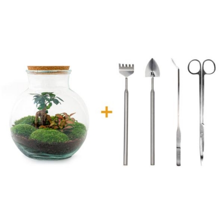 • DIY Planten terrarium – Bolder Bob Bonsai – Ø 31 cm ↑ 30 cm – Rake + Shovel + Tweezer + Scissors
