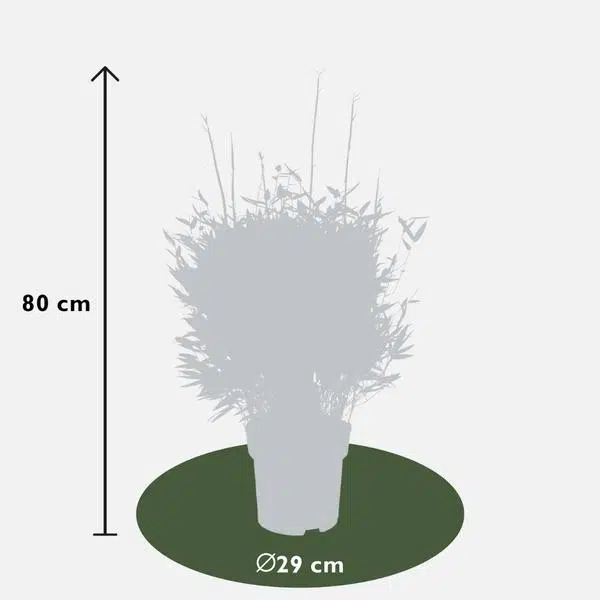 Breng een vleugje elegantie en frisheid in uw tuin of interieur met deze prachtige Fargesia murieliae ‘Moontears’ Boobux. Deze bamboevariant, bekend om zijn compacte en niet-invasieve groeiwijze, vormt dichte, bolvormige planten met een ontspannen uitstraling. Geleverd in potten met een diameter van 29 cm en een gemiddelde hoogte van 70 cm inclusief pot, zijn deze planten ideaal voor zowel binnen- als buitengebruik.