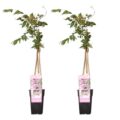 ‘Wisteria floribunda Rosea’ ook wel bekend als roze regen is een roze bloemige variant van de blauwe regen. Deze soort groeit en bloeit op dezelfde manier als de blauwe regen, maar is net even wat exclusiever! Het is een klimplant met mooie, zeer lange, hangende bloemtrossen die massaal verschijnen in mei- juni. Er kan in september ook nog een nabloei plaatsvinden. Het is een snelgroeiende klimplant die een maximale hoogte van 10 meter kan bereiken. Om de wisteria het mooist in vorm te houden kun je hem het beste langs een pergola, schutting of rek leiden. Zorg daarbij voor stevige steun, waaraan de takken bevestigd worden en hij naar de zon kan klimmen. Daarnaast is het belangrijk de plant regelmatig terug te snoeien tijdens de groei of in het vroege voorjaar. Snoei liefst twee maal per jaar.