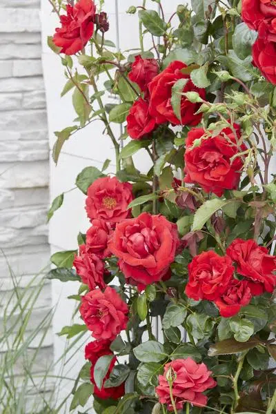 Uiterlijk van de plant: Rosa Crazy in Love is een prachtige roos met opvallende bloemen in een levendige, oranje-roze kleur. De bloemen hebben een volle, ronde vorm en zijn rijkelijk gevuld met bloemblaadjes die een aangename geur verspreiden. De bladeren zijn diep groen en glanzend, wat een mooi contrast vormt met de kleurrijke bloemen.