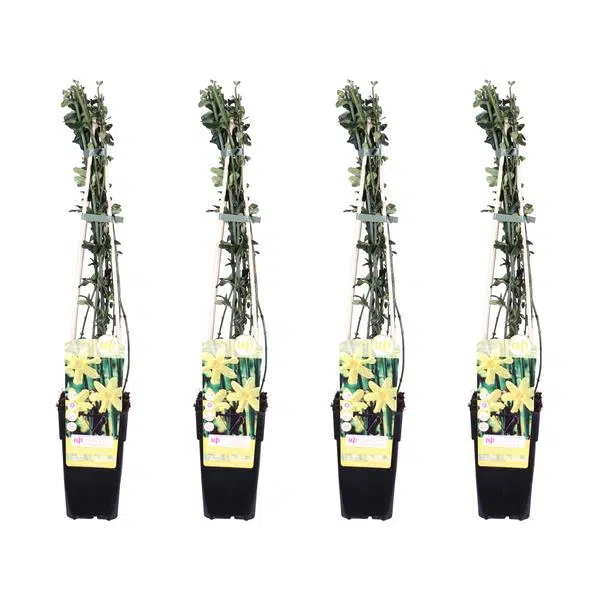 Deze Jasminum is een unieke klimplant, dankzij de bloei in de winterperiode. In januari en februari verschijnen er talloze gele bloemetjes aan de dan nog kale takken. Een erg vrolijk gezicht, op een moment waarop nog vrijwel niets in de tuin bloeit.