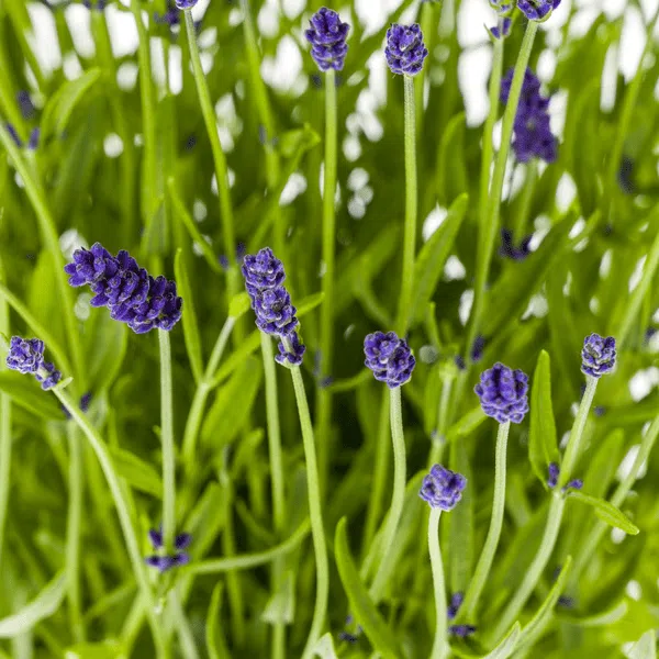 - Lavandula angustifolia is een sierlijke, compacte plant met smalle, grijsgroene bladeren.