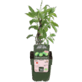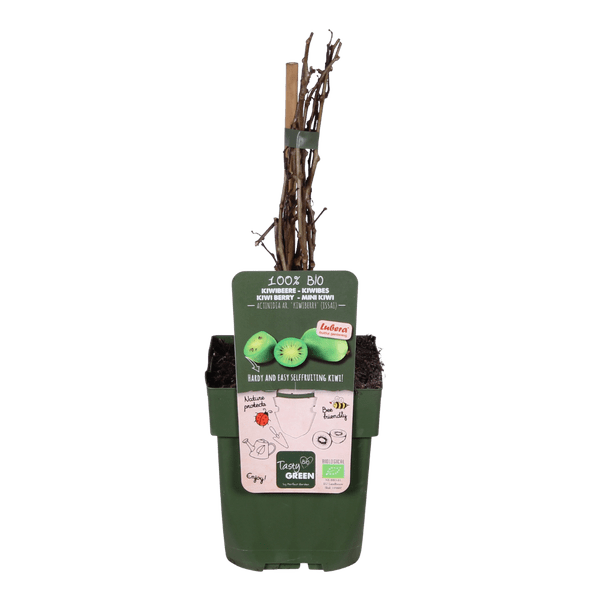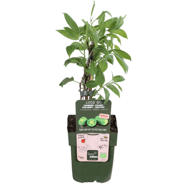 ‘Actinidia Arguta Issai’ is een zelfbestuivende kiwibes die al op jonge leeftijd kleine, gladde, haarloze vruchtjes geeft. Hij is ook wel bekend onder de naam mini-kiwi. De vruchten zijn zonder te schillen op te eten en rijk aan vitamine C. Ze hangen in grote trossen aan de plant, vaak gecamoufleerd tussen het blad. De opengesneden vrucht doet denken aan een miniatuur kiwi, een witte kern met daaromheen een ring van zwarte zaden en het typische lijnenpatroon. De zoete, groene bessen zijn klaar om geplukt te worden in augustus- september en zijn zo’n 2 tot 3 cm groot.