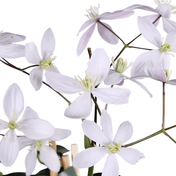 ‘Clematis armandii Apple Blossom’ dankt zijn naam aan de bloemen die qua kleur een grote gelijkenis vormen met de bloemen van de appelbomen. De bloemen zijn namelijk in de knop roze van kleur, de bloembladeren zelf zijn wit gekleurd met geelwitte meeldraden in het midden. De bloemen verschijnen al in het vroege voorjaar aan de klimplant. Het is een uitbundige bloeier, waar bijen graag op af komen. Bijzonder aan deze klimplant is dat dit een van de weinige clematissen is die groen blijft in de winter. Zijn bladeren zijn leerachtig, langwerpig groen en zijn zeer elegant.