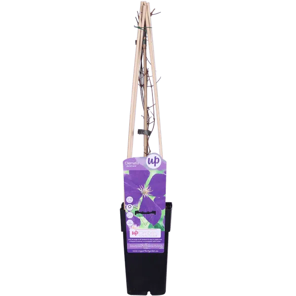 ‘Clematis Jackmanii’ is een clematis met middelgrote, diep paars-blauwe bloemen. Deze verschijnen tijdens de zomermaanden, juli tot september. De clematis is een winterharde plant die de Nederlandse winter uitstekend kan verdragen. Hij heeft een grote sierwaarde vanwege de mooie vorm en bloeiwijze. Snoei de clematis aan het einde van de winter terug tot 30 cm boven de grond, zo krijg je de rijkste bloei en hou je de plant goed in vorm. Wanneer je de clematis langs een rek of schutting wilt laten groeien is het raadzaam de plant een beetje te helpen. Dit kun je doen door de nieuwe uitlopers netjes langs het rek te binden of door de schutting te leiden.