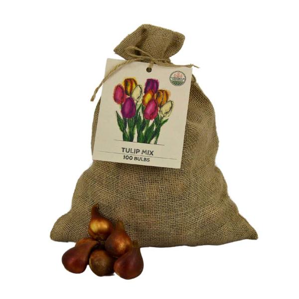 - Verpakking: de 100 tulpenbollen worden geleverd in een jutten zak waarbij de bloembollen al gemixt zijn.