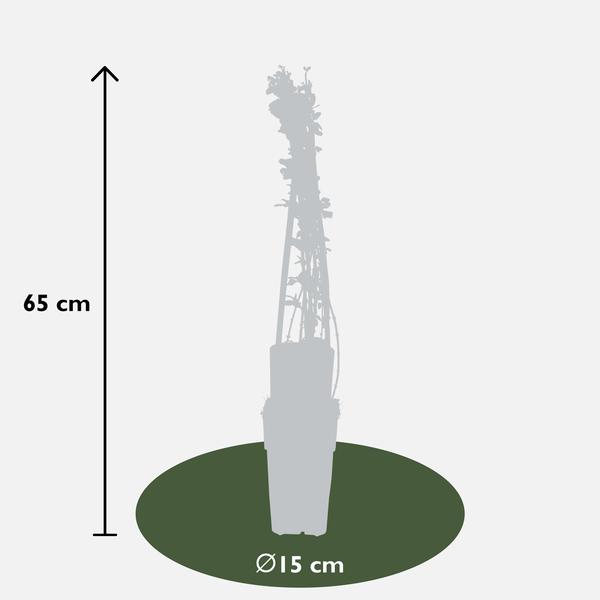 Deze Jasminum is een unieke klimplant, dankzij de bloei in de winterperiode. In januari en februari verschijnen er talloze gele bloemetjes aan de dan nog kale takken. Een erg vrolijk gezicht, op een moment waarop nog vrijwel niets in de tuin bloeit.