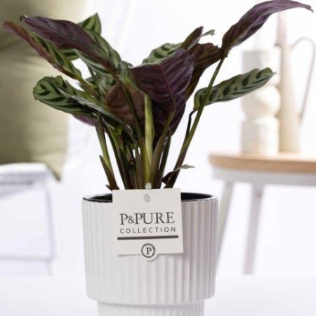- De plant is gepresenteerd in een stijlvolle roze keramieken vaas uit de P&PURE Maxima-serie.