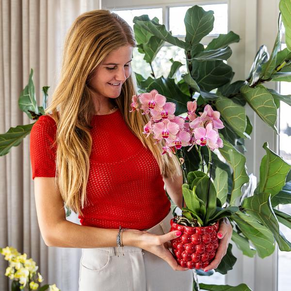 Ga voor een echte eyecatcher in huis! Deze oranje roze orchidee is opvallend door zijn mooie kleurcombinatie. Kenmerkend voor de orchidee is de donkerroze binnenkant die lichter van kleur wordt naarmate je naar de buitenkant van de bloem kijkt. De plant heeft veel knoppen en een potmaat van 12 cm.