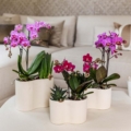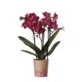 De Kolibri Orchids Chamonix heeft een krachtige en stijlvolle uitstraling dankzij haar dieppaarse tot bordeauxrode bloemen. De warme kleur geeft direct een chique en sfeervol accent aan je interieur. Door de rijke vertakking met veel zijtakken en knoppen blijft de plant lang vol en bloeiend.