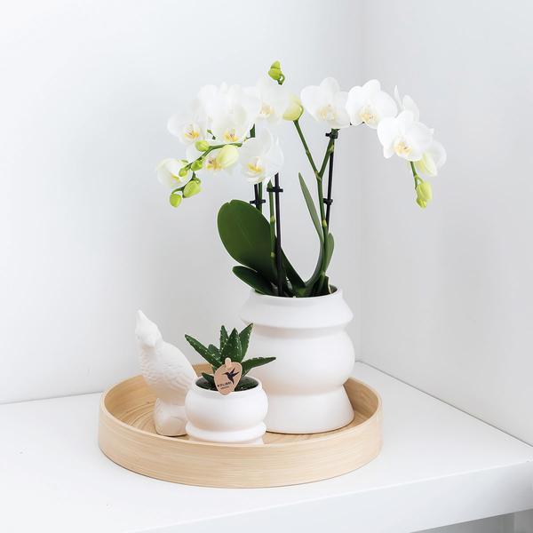 *De orchidee wordt geleverd met 2 of 3 stevige takken, afhankelijk van de actuele beschikbaarheid. Omdat we met levende producten werken, kunnen er kleine variaties zijn in het aantal takken of bloemen.