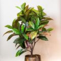 De Croton Codiaeum heeft een hoop bladeren in allerlei bonte kleuren. Vandaar ook de Nederlandse naam Wonderstruik. Onze mooie kunst Wonderstruik komt met bladeren in verschillende kleuren groen, rood en paars. De stam is gemaakt van hout. Het geheel is nauwelijks van echt te onderscheiden. Geef de Wonderstruik een mooi plekje in de kamer of op kantoor zodat iedereen zich kan verwonderen over deze schitterende kunstboom. De Croton Codiaeum is ook verkrijgbaar in een kleinere maat en als kleine kamerplant.