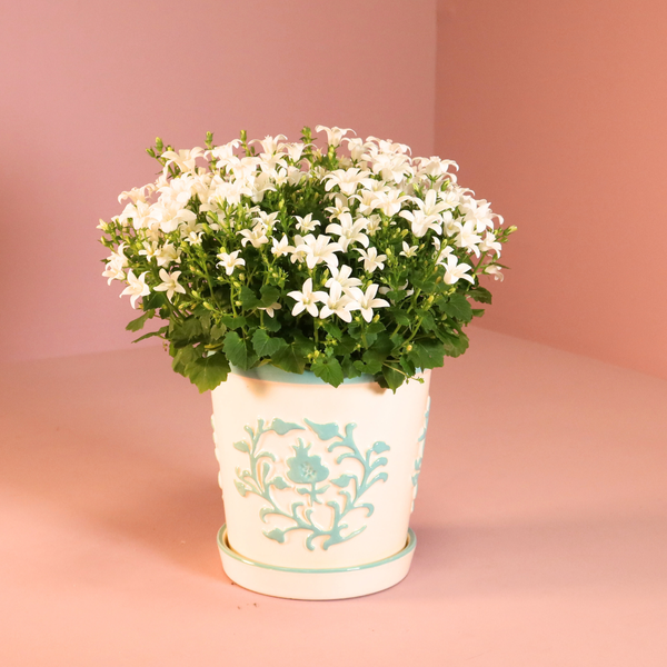 Breng frisse energie en natuurlijke sfeer in huis met onze Bloompot in de kleur green. De zachte groentint zorgt voor een rustgevende uitstraling en vormt een prachtig contrast met het speelse bloesemreliëf aan de bovenkant. Het glanzende reliëf lijkt subtiel over de rand naar beneden te vloeien, waardoor deze pot een verfijnde en unieke look krijgt.
