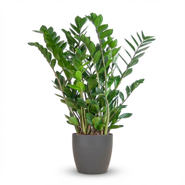 De ZZ-plant komt oorspronkelijk uit warme gebieden als Zanzibar, Kenia en Madagaskar. Deze kamerplant met lange stengels en zijn prachtige glimmende bladeren kan op elke standplaats worden neergezet (niet te donker). Een ideale plant voor de plantenliefhebbers met minder groene vingers of minder tijd. Als de Zamioculcas een keer geen water krijgt is dat niet zo erg. Hij groeit naar het licht, dus draai hem om de zoveel tijd voor een volle plant.